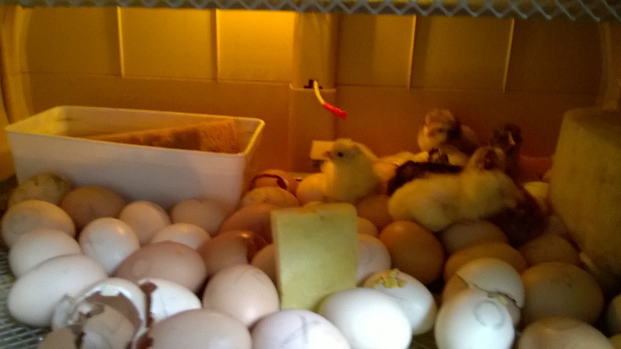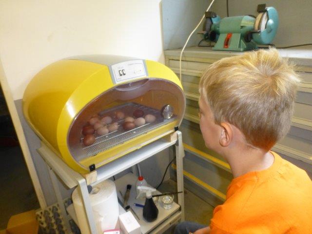 De broedmachine heeft fantastisch werk gedaan van de 29 bevruchte eieren is er 1 niet uitgekomen.