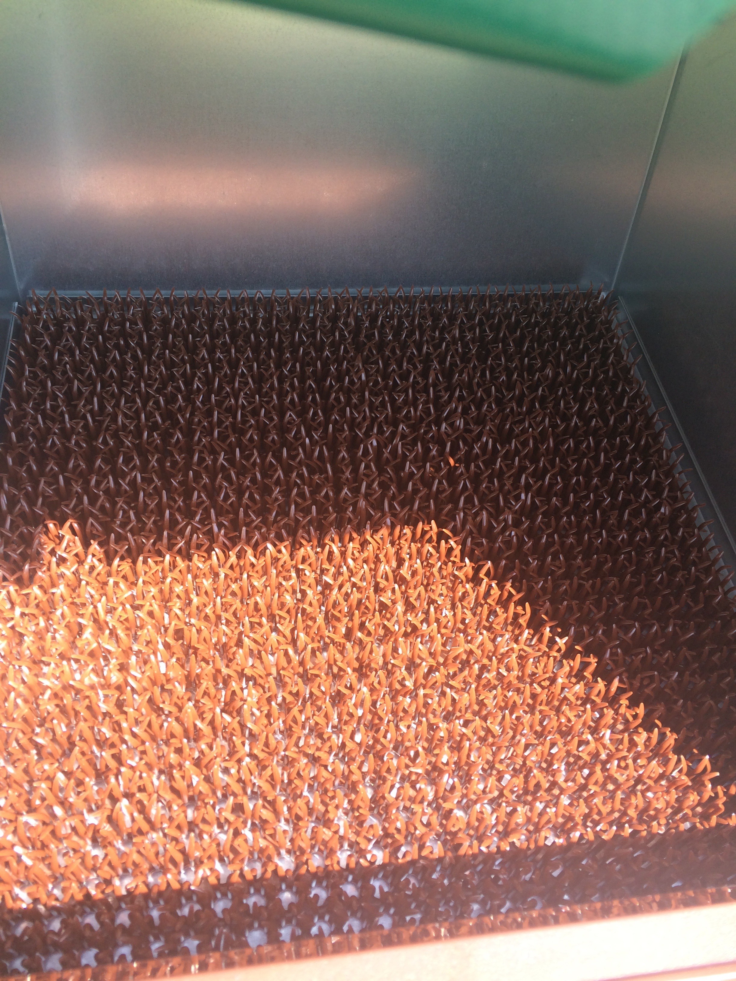 - Op de bodem van het wegrol legnest ligt een nestmatje, dit is gemaakt van polyethyleen en het neemt daardoor geen bacterieen op. De haartjes van dit matje zorgen ervoor dat de eieren zo min mogelijk in contact komen met vuil. Doordat het matje zacht is, is het voor de kippen heel comfortabel om er op te zitten, dit heeft als grote voordeel dat ze de eieren ook in het legnest leggen en niet in een hoekje op de grond.