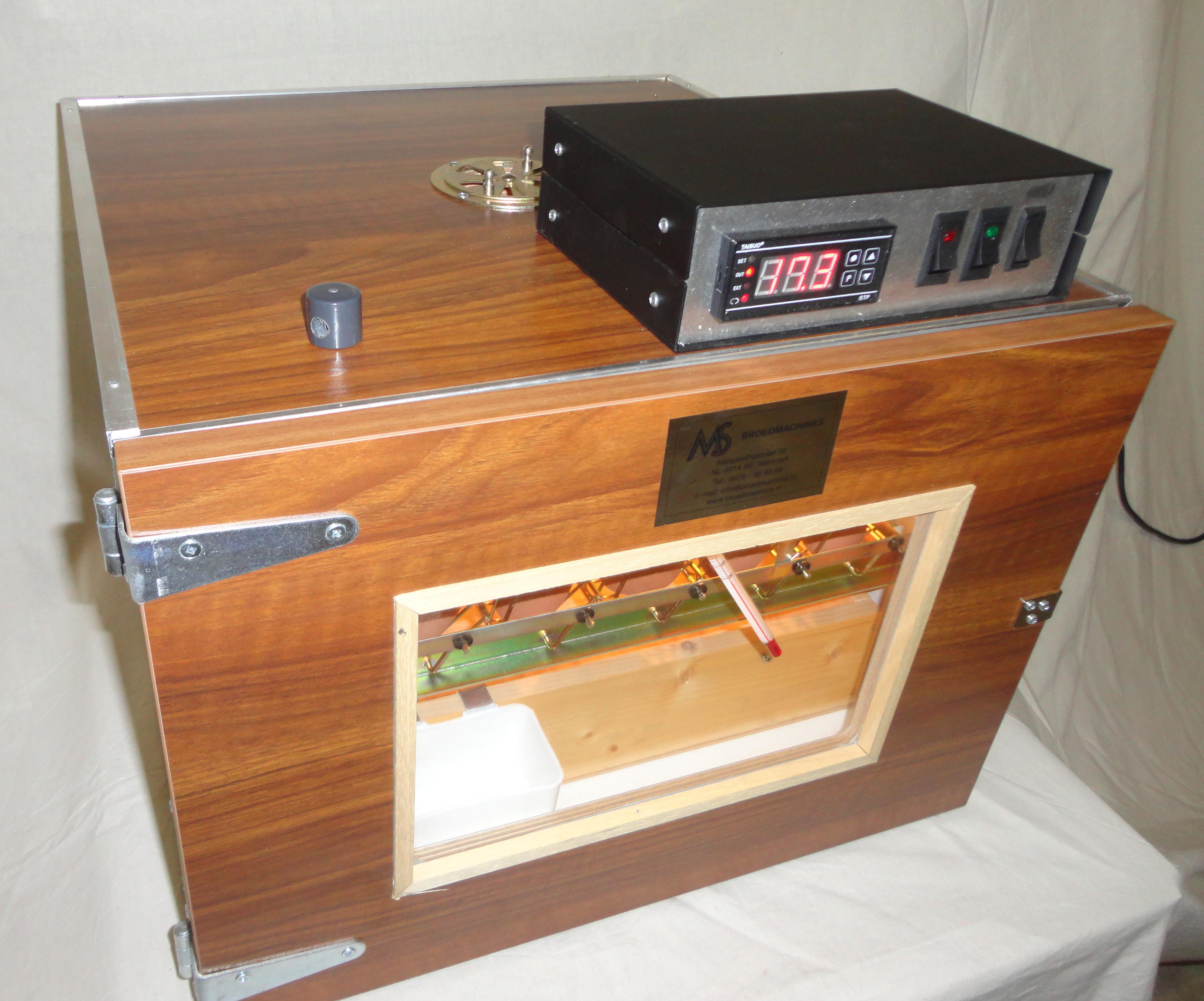 De machine heeft een perfecte warmte circulatie door middel van een ventilator. Het keren van alle eieren geschiedt volautomatisch 1 maal per uur. De broedcapaciteit van de MS 50 is 48 kippeneieren. Deze broedmachine wordt standaard geleverd met een keerrooster voor het formaat van kippen en fazanten eieren. Het is mogelijk hier een ander formaat rek bij te bestellen voor kwartel, kalkoen of ganzen eieren.