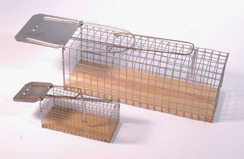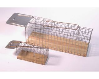 Rattenvangkooi met houten bodem Degelijke vangkooi gemaakt van verzinkt gaas en met houten bodem.