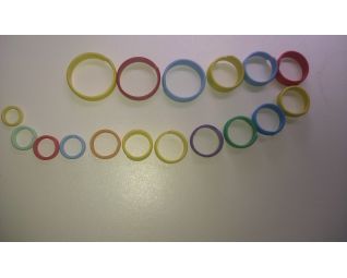 De ringen zijn per 10 stuks van een kleur verpakt.